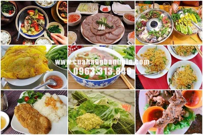 1.Top 100 món ăn đặc sản bao gồm: phở, chả cá Lã Vọng, bún chả (Hà Nội), chả mực Hạ Long (Quảng Ninh), bánh đa cua (Hải Phòng), thắng cố Bắc Hà (Lào Cai), vịt quay lá mắc mật (Lạng Sơn), súp lươn (Nghệ An), bún bò (Huế), mì Quảng (Quảng Nam), phở khô (Gia Lai), gỏi sầu đâu khô cá lóc (An Giang), bánh khọt (Vũng Tàu), bánh tằm bì (Bạc Liêu), bún chả cá Quy Nhơn (Bình Định), lẩu thả (Bình Thuận), cơm trái dừa (Bến Tre), hủ tiếu Mỹ Tho (Tiền Giang), vịt nấu chao (Cần Thơ), hủ tiếu Sa Đéc (Đồng Tháp), bún nước lèo (Sóc Trăng), bánh canh Bến Có (Trà Vinh), bánh giá Gò Công (Tiền Giang), gỏi cá trích (Kiên Giang),cua Năm Căn (Cà Mau),…