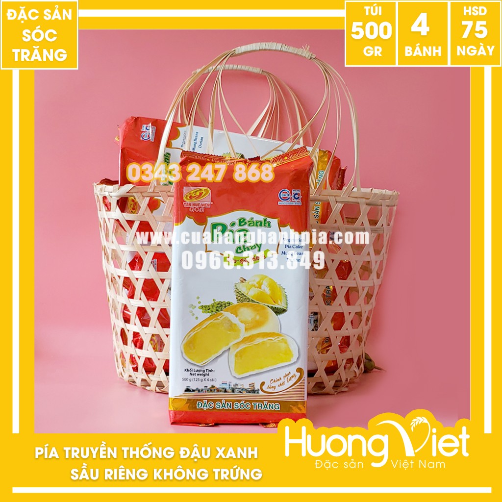 Hãy là người đầu tiên nhận xét “Bánh pía truyền thống đậu xanh sầu riêng không trứng Tân Huê Viên 500g”