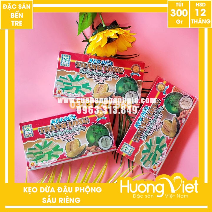 Kẹo dừa đậu phộng sầu riêng thanh long 300g là một trong những món kẹo đặc sản nổi tiếng của miền tây nhưng nổi tiếng nhất, thơm ngon nhất vẫn là kẹo dừa đến từ huyện Mỏ Cày, tỉnh Bến Tre