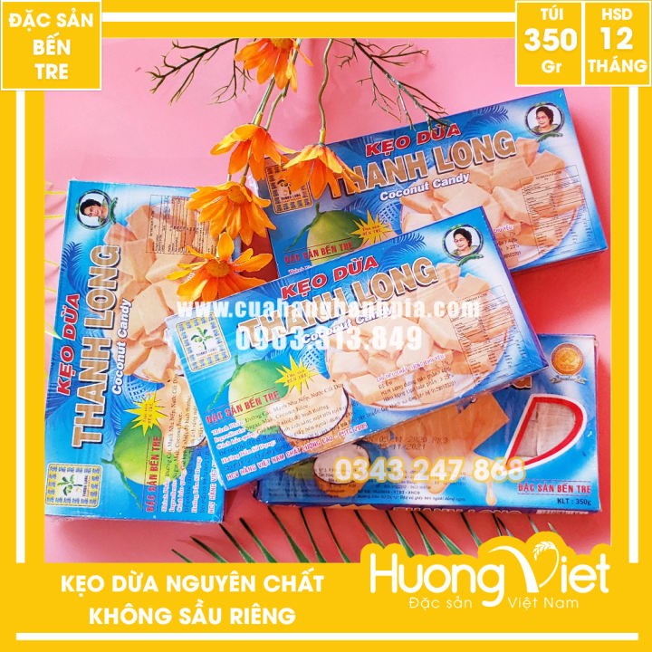 Kẹo dừa không sầu riêng thanh long 350g là một trong những món kẹo đặc sản nổi tiếng của miền tây nhưng nổi tiếng nhất, thơm ngon nhất vẫn là kẹo dừa đến từ huyện Mỏ Cày, tỉnh Bến Tre